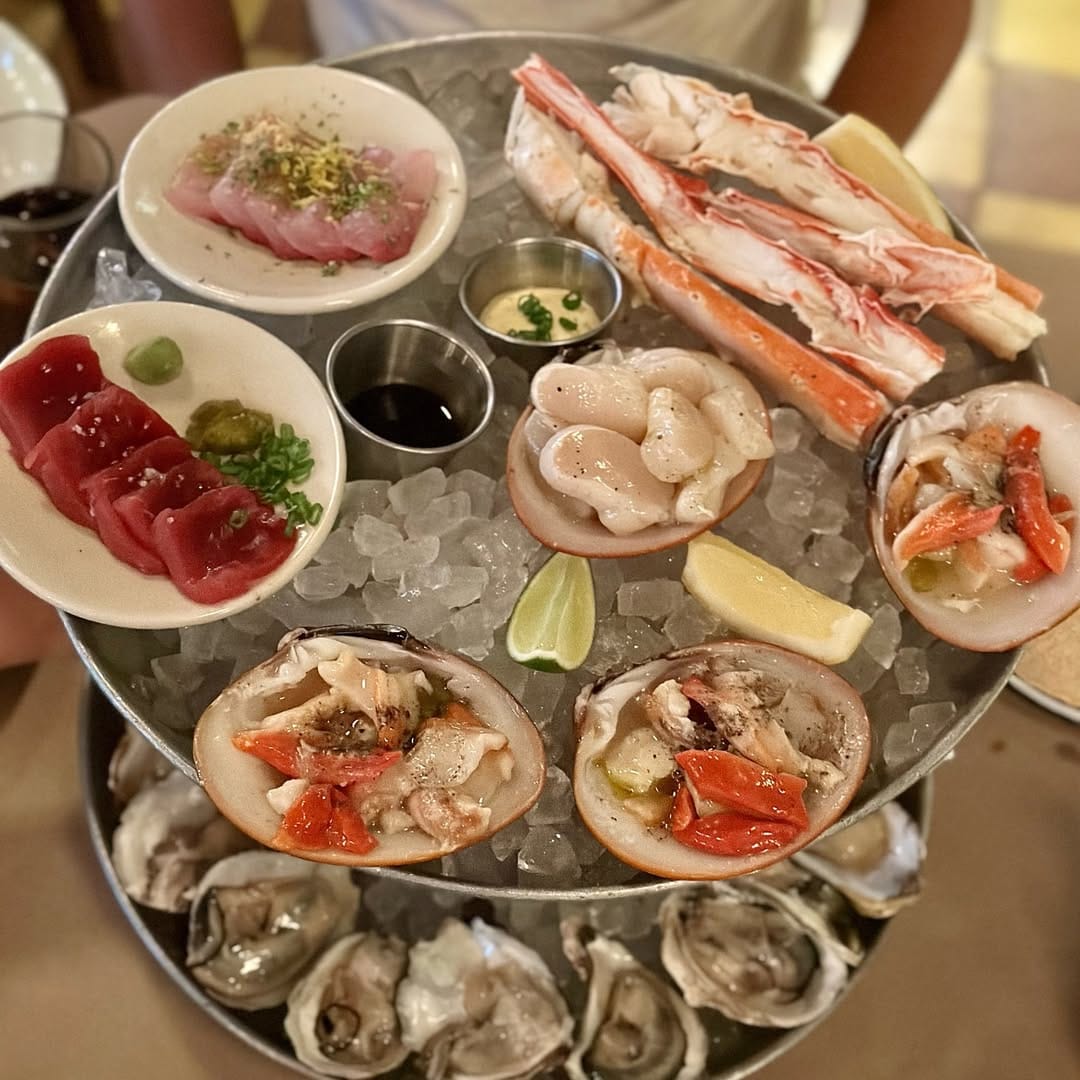 Inspirado en los oyster bars de Nueva Orleans, el chef Tomás Bermúdez abre conchas frescas al momento y sirve cortes a la parrilla acompañados de cerveza artesanal tapatía. Ambiente bullicioso con barra visible y banco de hielo repleto de mariscos vivos.